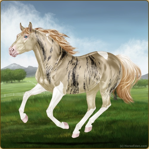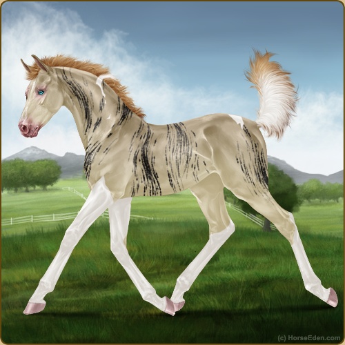 Name: Medusa Age: Two Gender: Mare Herd: Loner Rank: Yearling Desired Rank: Deputy mare for any herd Apearence: Medusa is a stocky well built filly, shes a perlino tobiano with blue eyes and a dark brindle pattern that makes it look like snakes are clinging to her back earning her the name 'Medusa'. She currently stands at almost 13 hands with her predicting her final high at around 15'3 to 16 hands. Personality: Medusa is definitely a filly whose going to live up to something, she's strong feisty and doesn't let anyone talk her down. If one of the colts says she can't jump the river, well Medusa is going to jump that river even if she breaks her leg doing so. Some might call her wreckless but she's actually quite smart, and by showing her herd she's not afraid she hopes that will get her the deputy mare position one day. Crush: none Foals: none, open to mates once she's of age Kin: none Other: Medusa is a yearling but also a orphan foal. Her mother died with giving birth to her so she raised herself living alone in the woods where her coat lets her blend into her surroundings. Edited at February 1, 2026 01:14 PM by ghost light stables