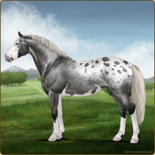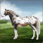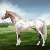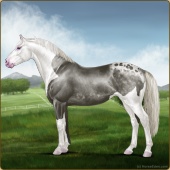 Name: 𐂅 Wildish EEE (1/16)Age: 19 Stallion Color: Silver Roan Splash White Varnish Blanket Appaloosa Breed: Irish Sport Horse Foal Rating: E/E/E |  |