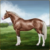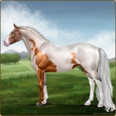Name: ℂ Cobalt Breeze AAge: 0 Stallion Color: Flaxen Red Roan Splash White Breed: Irish Sport Horse Foal Rating: E/W/E |  |