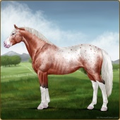 Name: Frosted Fashion Age: 0 Stallion Color: Silver Mahogany Bay Roan Splash White Frost Appaloosa Breed: Irish Sport Horse Foal Rating: W/W/E |  |