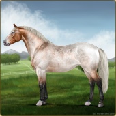 Name: Blue Gentleman EWW 1/2Age: 0 Gelding Color: Silver Roan Grullo Splash White Sabino Varnish Appaloosa Breed: Irish Sport Horse Foal Rating: E/W/W Bravery Rating: Sub-Par |  |