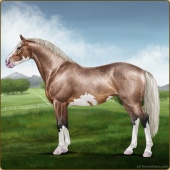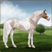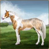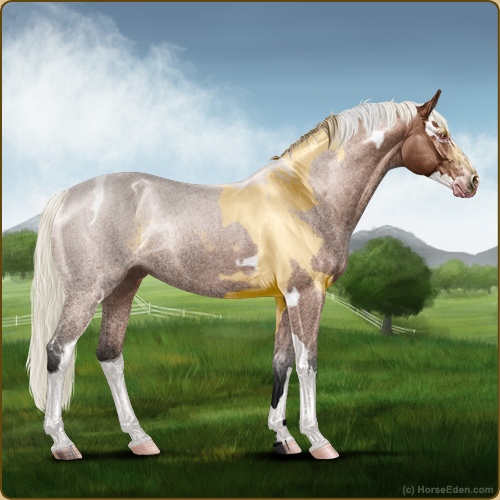 Name: Picas X Althe | EWWAge: 11 Stallion Color: Silver Golden Bay Roan Tobiano Sabino Breed: Irish Sport Horse Foal Rating: E/W/W |  |