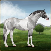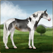Name: Picas X SSRac 196Age: 5 Mare Color: Silver Black Tobiano Sabino Breed: Sport Horse Foal Rating: E/E/E |  |