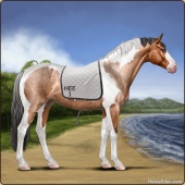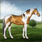 Name: Unknown Art EWEAge: 9 Stallion Color: Golden Bay Roan Tobiano Sabino Breed: Sport Horse Foal Rating: E/W/E |  |