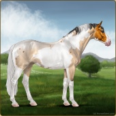 Name: Pistachio EWWAge: 10 Gelding Color: Buckskin Roan Pearl Tobiano Sabino Breed: Sport Horse Foal Rating: E/W/W |  |