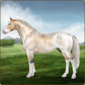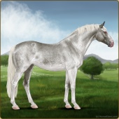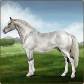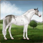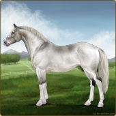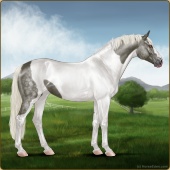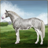 Name: Silver SpoonAge: 5 Mare Color: Silver Roan Splash White Sabino Breed: Irish Sport Horse Foal Rating: E/W/W |  |