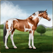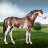 Name: Impressionist HeartAge: 10 Mare Color: Mahogany Bay Tobiano Sabino Breed: Irish Sport Horse Foal Rating: E/W/W |  |