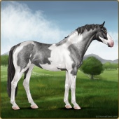 Name: ❂ Blue BloodAge: 3 Stallion Color: Blue Roan Tobiano Sabino Breed: Sport Horse Foal Rating: W/W/W For Breeding! |  |