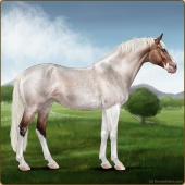 Name: North Picasso AngelAge: 11 Stallion Color: Light Bay Roan Sabino Breed: Irish Sport Horse Foal Rating: W/W/W Bravery Rating: Sub-Par For Breeding! |  |