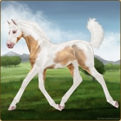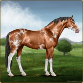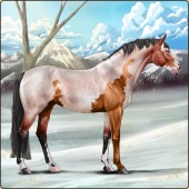 Name: 𝒦 Picasso Champ EEEAge: 6 Mare Color: Golden Bay Roan Splash White Sabino Blanket Appaloosa Breed: Sport Horse Foal Rating: E/E/E |  |