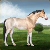 Name: ᘔᏋ AnaniasAge: 11 Stallion Color: Buckskin Roan Tobiano Sabino Breed: Sport Horse Foal Rating: W/W/W For Breeding! |  |