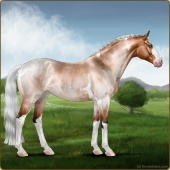 Name: Picaso Silver Lining EEEAge: 6 Stallion Color: Silver Light Bay Roan Tobiano Sabino Breed: Sport Horse Foal Rating: E/E/E |  |