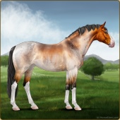 Name: Painter's DreamAge: 13 Stallion Color: Smokey Blue Roan Sabino Breed: Sport Horse Foal Rating: E/W/W Bravery Rating: Average For Breeding! |  |