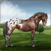 Name: ➺ ✪ DiannaAge: 8 Mare Color: Brown Varnish Leopard Appaloosa Breed: Knabstrupper Foal Rating: P/P/S Bravery Rating: World Class |  |