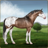 Name: "foal 53269479Age: 6 Mare Color: Light Bay Sabino Frame Appaloosa Breed: Sport Horse Foal Rating: E/W/E |  |
