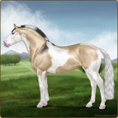 Color: Golden Bay Dun Tobiano Splash White Sabino