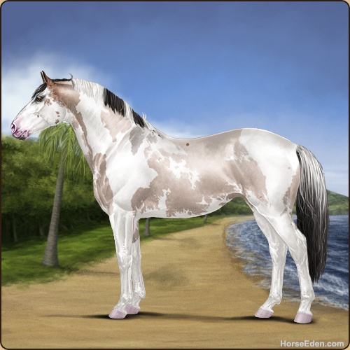 Color: Mahogany Bay Roan Dun Tobiano Sabino