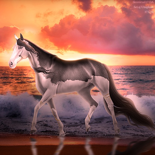 Name: SplasheAge: 6 Stallion Color: Light Bay Splash White Sabino Breed: Appendix Quarter Horse Foal Rating: W/E/E |  |